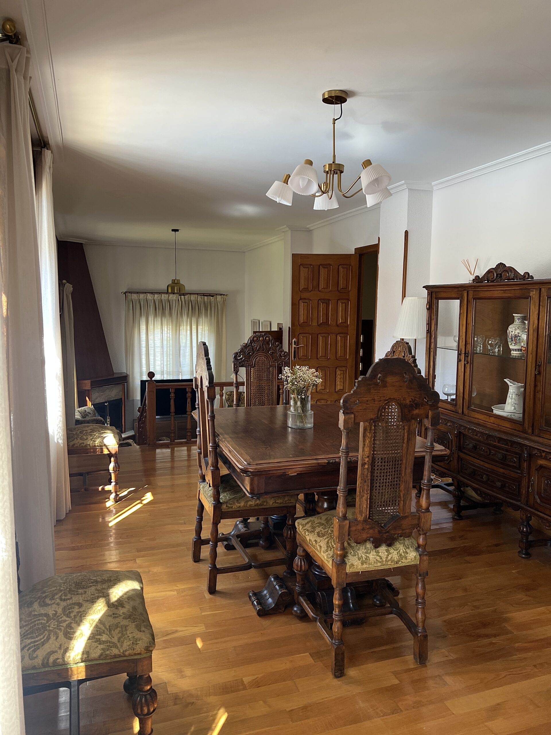 Una cocina tradicional y totalmente equipada para que puedas disfrutar de las comidas en familia durante tu estancia, con un amplio comedor conectado a un acogedor salón provisto de chimenea.