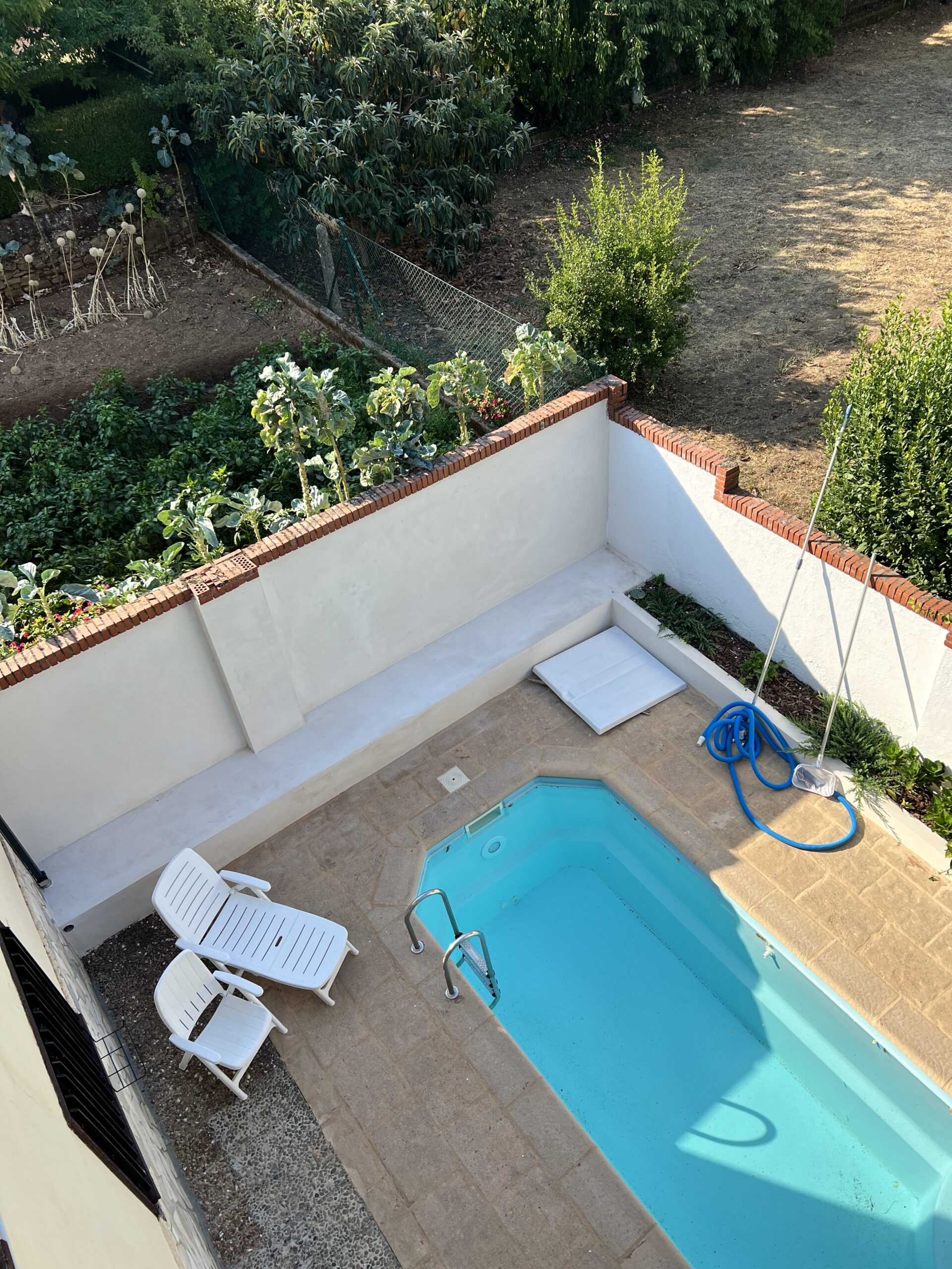 Relájate en nuestro extenso jardín equipado con una piscina, zona de descanso, barbacoa y un comedor exterior que conecta directamente con la cocina.
